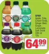Spar Apple, Cola, Cream Soda, Ginger Beer, Grape, Lemonade Soft Drink 330ml-12 Per Pack promotion at Spar