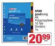 Spar Good Living A4 Polypropylene 10 Tab Dividers-1s promotion at Spar
