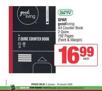 Now on special at Spar: SPAR goodliving A4 Counter Book ✅ Valid from 5-01 to 19-01.