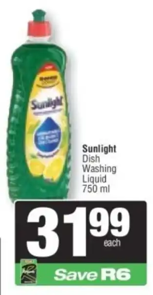 This special is available in various stores, view all products to get the cheapest Sunlight DishWashing Liquid. If you'd like to find out whether this product has a bigger discount in another store, check the category 'Grocery stores'. You may also find these specials interesting: Sunlight Dishwashing Liquid, Sunlight Dishwashing Liquid & SUNLIGHT Dishwashing Liquid Lemon or SUNLIGHT Platinum Dishwashing Liquid.