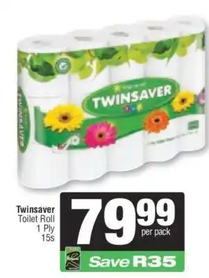 This special is available in various stores, view all products to get the cheapest Twinsaver Toilet Roll. If you'd like to find out whether this product has a bigger discount in another store, check the category 'Grocery stores'. You may also find these specials interesting: TWINSAVER 1 Ply 500 Sheets Toilet Tissue Roll, TWINSAVER 1 Ply 500 Sheets Toilet Tissue Roll & Twinsaver Essential 2-Ply Roll 350 Sheets Toilet Tissue.