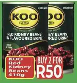 This special is available in various stores, view all products to get the cheapest KOO Red Kidney Beans. If you'd like to find out whether this product has a bigger discount in another store, check the category 'Grocery stores'. You may also find these specials interesting: KOO Baked Beans, Koo Baked Beans & KOO Baked Beans.