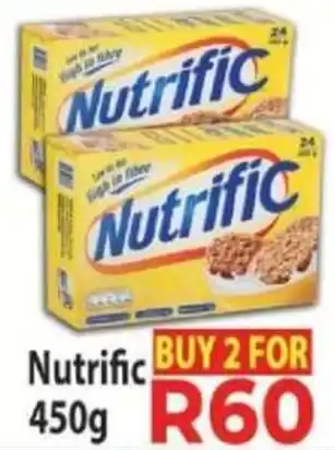 This special is available in various stores, view all products to get the cheapest Nutrific. If you'd like to find out whether this product has a bigger discount in another store, check the category 'Grocery stores'. You may also find these specials interesting: NUTRIFIC Wholewheat Biscuits, NUTRIFIC Wholewheat Biscuits & NUTRIFIC Cornflakes 1.2kg & Wholewheat Biscuits 900g.