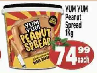 This special is available in various stores, view all products to get the cheapest YUM YUM Peanut Spread. If you'd like to find out whether this product has a bigger discount in another store, check the category 'Grocery stores'. You may also find these specials interesting: YUM YUM Peanut Spread, Yum Yum Peanut Spread-1Kg & Yum yum peanut spread.