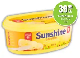 This special is available in various stores, view all products to get the cheapest Sunshine D Spread. If you'd like to find out whether this product has a bigger discount in another store, check the category 'Grocery stores'. You may also find these specials interesting: Sunshine D fat spread, Sunshine D Margarine & Sunshine d original margarine.