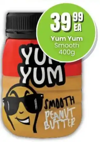 This special is available in various stores, view all products to get the cheapest Yum Yum Smooth. If you'd like to find out whether this product has a bigger discount in another store, check the category 'Grocery stores'. You may also find these specials interesting: Yum Yum Smooth, Yum Yum Peanut Butter & Yum Yum Peanut Spread.