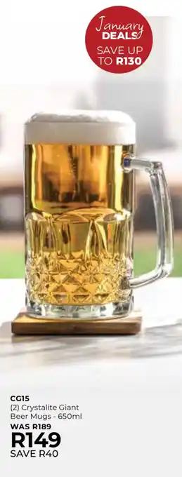 Now on special at Table Charm Direct: CG15 Crystalite Giant Beer Mugs ✅ Valid from 1-01 to 31-01.