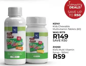 This TC Kid's Multi Vitamin Syrup promotion is valid in week 01. Has it expired? You can always check other current offers. Follow the product category to be notified immediately when TC Kid's Multi Vitamin Syrup is available again in a future promotion.