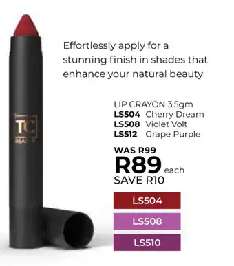 The TC Lip Crayon is available this week at Table Charm Direct as part of a special promotion. On this page, you’ll find everything about the promotional price, terms, and current specials. Browse related promotions and offers for TC Lip Crayon to make sure you don’t miss out.
