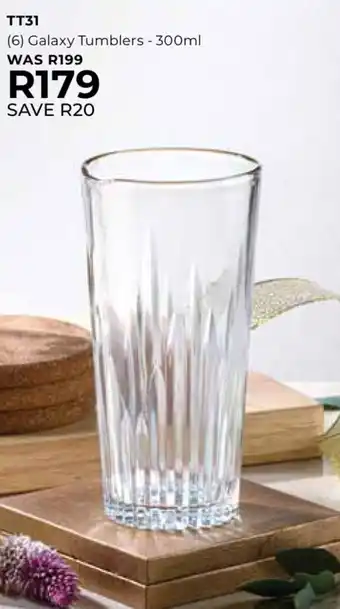 This special is available in various stores, view all products to get the cheapest TT31 Galaxy Tumblers. If you'd like to find out whether this product has a bigger discount in another store, check the category 'Department Stores'. You may also find these specials interesting: TT148 Arena Tumblers, TT49 Tiara Tumblers & TC Twilight Tumblers.