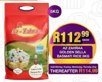 Az zahraa golden sella basmati rice promotion at Take 'n Pay