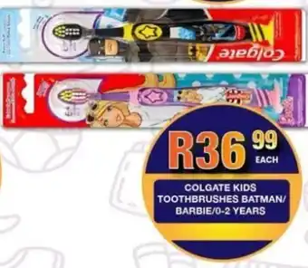 Colgate kids toothbrushes batman/ barbie/ 0-2 years promotion at Take 'n Pay