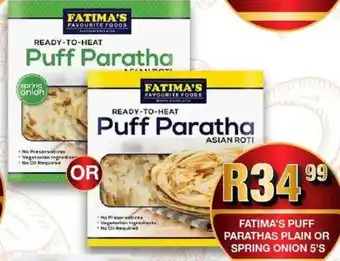 Fatima's puff parathas plain or spring onion Offer at Take 'n Pay