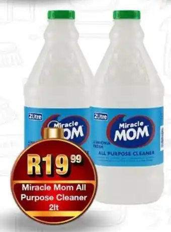 This special is available in various stores, view all products to get the cheapest Miracle Mom All Purpose Cleaner. If you'd like to find out whether this product has a bigger discount in another store, check the category 'Grocery stores'. You may also find these specials interesting: Miracle Mom Dish Washing Liquid OR Starlite All Purpose Cleaner, Miracle Mom Bleach & Miracle Mom Bleach.