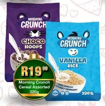 This special is available in various stores, view all products to get the cheapest Morning Crunch Cereal Assorted. If you'd like to find out whether this product has a bigger discount in another store, check the category 'Grocery stores'. You may also find these specials interesting: Futurelife Cereal Assorted, Assorted Cereal-For 2 x 340g,350g,400g & De Vries Classic Crunch Assorted Biscuits.