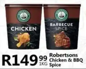 This special is available in various stores, view all products to get the cheapest Robertsons Chicken & BBQ Spice. If you'd like to find out whether this product has a bigger discount in another store, check the category 'Grocery stores'. You may also find these specials interesting: Robertsons BBQ, Steak & Chop, Chicken Spice, Robertsons Spice BBQ/ Chicken/ Fish/ Steak & Chops & Robertsons Chicken Spice Pouch.