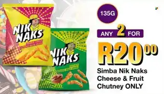 Simba Nik Naks Cheese & Fruit Chutney offers and online specials, directly from Take 'n Pay