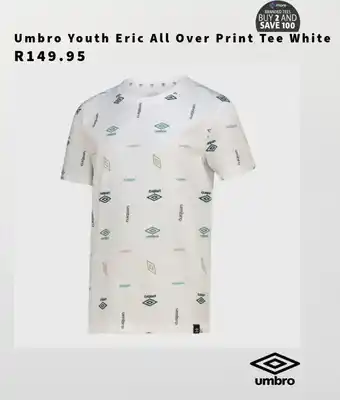 Now on special at Tekkie Town: Umbro Youth Eric All Over Print Tee White ✅ Valid from 17-01 to 23-01.