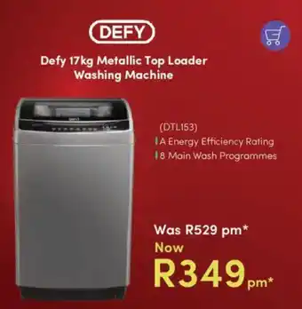 This special is available in various stores, view all products to get the cheapest Defy Metallic Top Loader Washing Machine. If you'd like to find out whether this product has a bigger discount in another store, check the category 'Electronics'. You may also find these specials interesting: DEFY Top Loader Washing Machine, 11kg Top Loader Washing Machine & Defy 17Kg Top Loader Washing Machine DTL153 (830306).