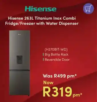 Hisense Titanium Inox Combi Fridge/ Freezer with Water Dispenser offers and online specials, directly from Teljoy