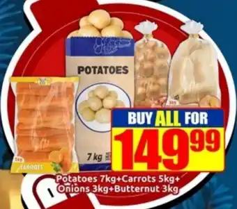 Potatoes 7kg + Carrots 5kg + Onions 3kg + Butternut 3kg