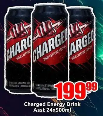 This special is available in various stores, view all products to get the cheapest Charged Energy Drink. If you'd like to find out whether this product has a bigger discount in another store, check the category 'Wholesale'. You may also find these specials interesting: Reboost Energy Drink, Predator Energy Drink & Burn Energy Drink.