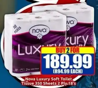 Nova Luxury Soft Toilet, Tissue 350 Sheets 2 Ply promotion at Three Star Cash and Carry