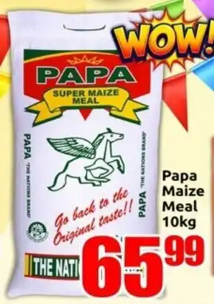 This special is available in various stores, view all products to get the cheapest Papa Maize Meal. If you'd like to find out whether this product has a bigger discount in another store, check the category 'Wholesale'. You may also find these specials interesting: Iwisa Super Maize Meal, Nyala Super Maize Meal & Itau Super Maize Meal.