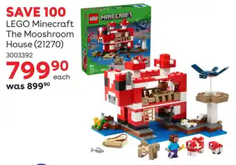 The price of LEGO Minecraft The Mooshroom House can be found at the top of the page, together with the dates during which the special is available. You can also check the price in the current ToysRUs catalogue or on the ToysRUs website. Promotional offers assure you of buying ToysRUs products at the lowest price.