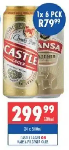Castle lager or Hansa pilsener cans promotion at Ultra Liquors