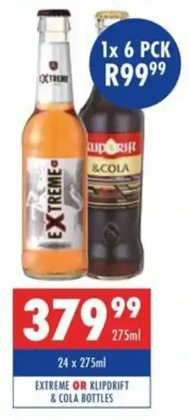 Extreme or klipdrift & cola bottles promotion at Ultra Liquors