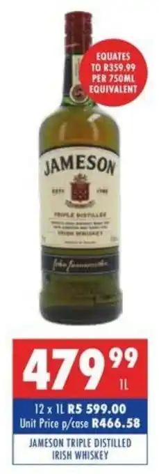 This special is available in various stores, view all products to get the cheapest Jameson triple distilled irish whiskey. If you'd like to find out whether this product has a bigger discount in another store, check the category 'Liquor stores'. You may also find these specials interesting: JAMESON Triple Distilled Irish Whiskey, JAMESON Triple Distilled Irish Whiskey & JAMESON Triple Triple Irish Whiskey.