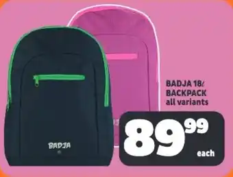 This special is available in various stores, view all products to get the cheapest Badja backpack. If you'd like to find out whether this product has a bigger discount in another store, check the category 'Grocery stores'. You may also find these specials interesting: Badja junior backpack, BADJA VENTURE BACKPACK all variants & EVEREST BACKPACK.