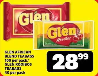 Glen african blend teabags/ glen rooibos teabags promotion at Usave