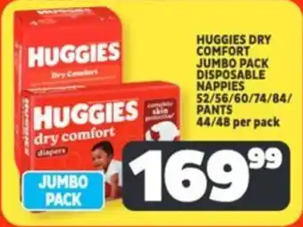 Huggies dry comfort jumbo pack disposable nappies/ pants Offer at Usave