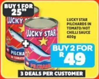 Lucky star pilchards in tomato/ hot chilli sauce offers and online specials, directly from Usave