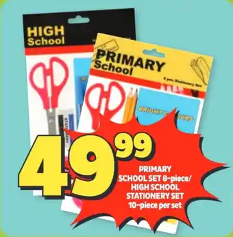 This special is available in various stores, view all products to get the cheapest Primary school set/ high school stationery set. If you'd like to find out whether this product has a bigger discount in another store, check the category 'Grocery stores'. You may also find these specials interesting: PRIMARY SCHOOL SET 8-piece / HIGH SCHOOL STATIONERY SET 9-piece per set, STAEDTLER PRIMARY SCHOOL STATIONERY PACK & STAEDTLER HIGH SCHOOL STATIONERY PACK.