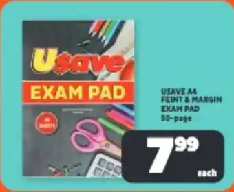 Usave A4 feint & margin exam pad promotion at Usave