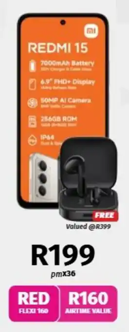 Vodacom offers a wide collection of products, besides the Redmi 15. Keep an eye on the weekly Vodacom catalogue to find the best specials and promotions. Besides Redmi 15, you can also find the following offers: Redmi 15 + Redmi 15C, Redmi 15 & Redmi 15.