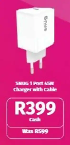 SNUG 1 Port 45W Charger with Cable promotion at Vodacom
