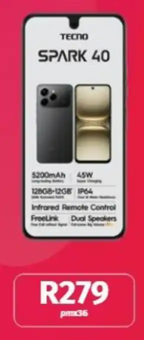 The Tecno Spark 40 is available this week at Vodacom as part of a special promotion. On this page, you’ll find everything about the promotional price, terms, and current specials. Browse related promotions and offers for Tecno Spark 40 to make sure you don’t miss out.