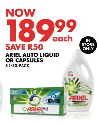 The ARIEL AUTO LIQUID OR CAPSULES is now available with a discount at Woolworths. On this page, you’ll find everything about the current price, promotion conditions, and how long the offer is valid. Also explore other offers and promotions for ARIEL AUTO LIQUID OR CAPSULES to make a smart and cost-effective choice.