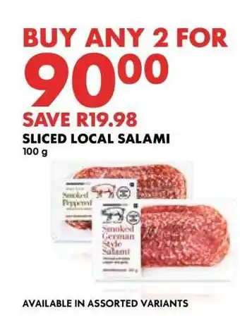 This special is available in various stores, view all products to get the cheapest Sliced Local Salami. If you'd like to find out whether this product has a bigger discount in another store, check the category 'Grocery stores'. You may also find these specials interesting: Sliced Sandwich Ham, Sliced Curry Brawn, Sliced Ham & Tongue or Sliced Pepperoni Loaf, Pork Shank Sliced & Liberty Select Beetroot Sliced.